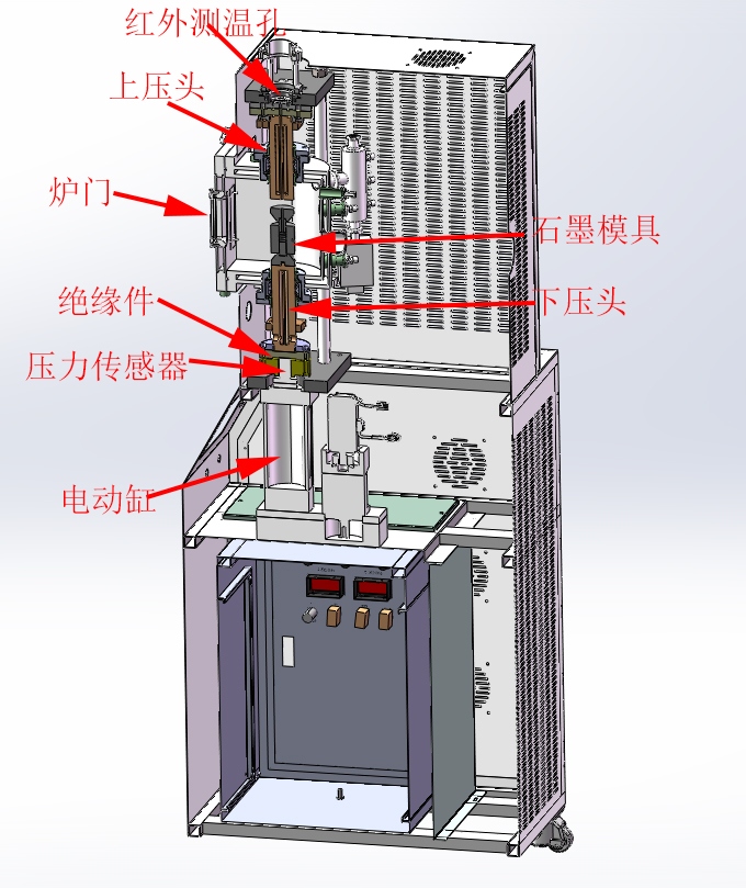 1、高温模具单元由高纯石墨制成,最大工作压强50MPa 2、请认真设计高温模具的尺寸,选择正确的压力。 |