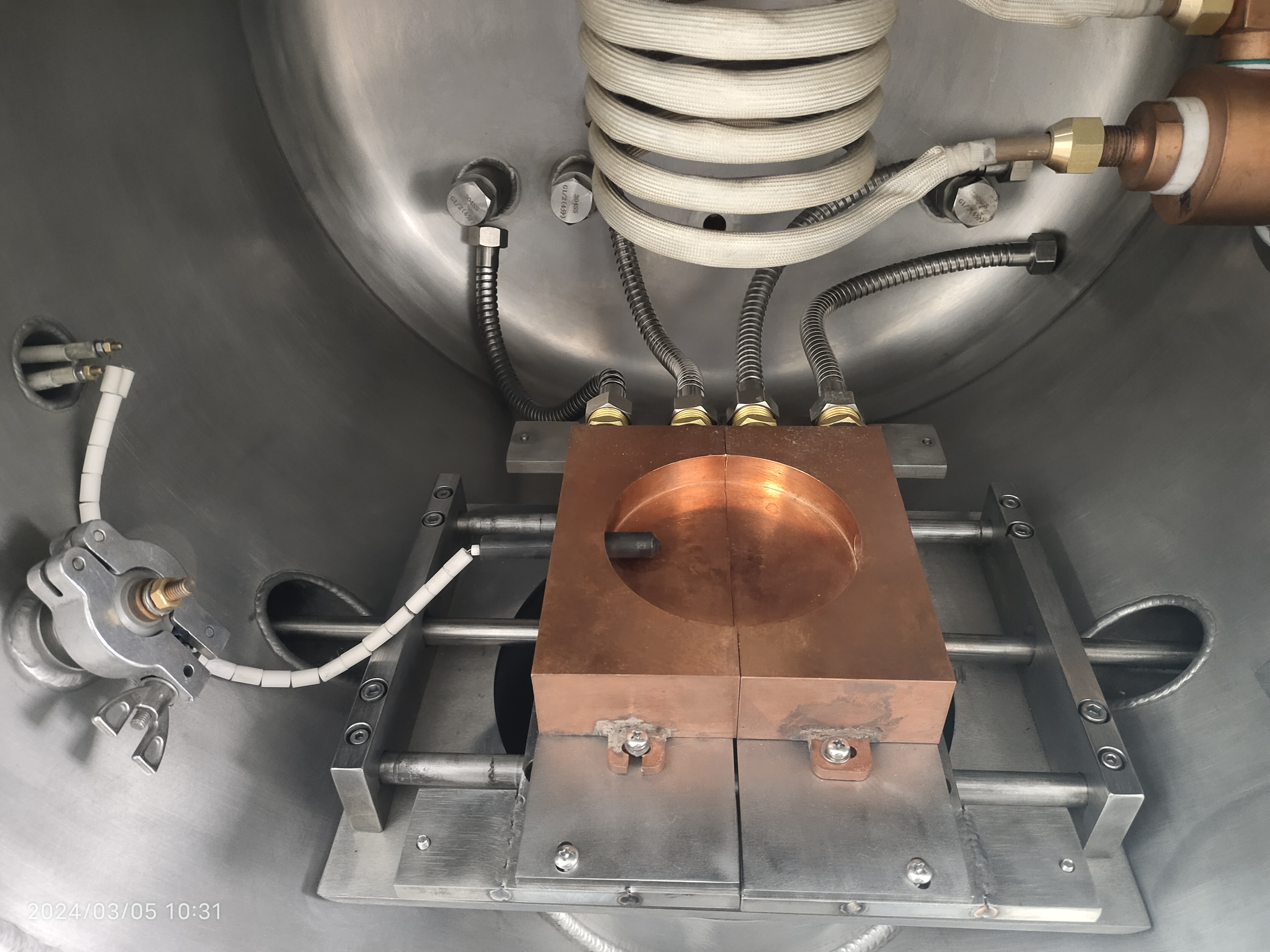 真空腔体内是否可接水冷坩埚 |
